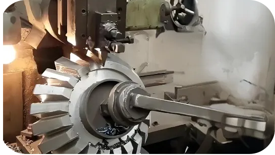 | 1、齒坯加工 | 經過熱處理的毛坯進入機械加工,這個階段主要是為下一階段加工齒形做準備,主要是加工出基準,使齒的內孔和端面的精度基本達到規定的技術要求。 |